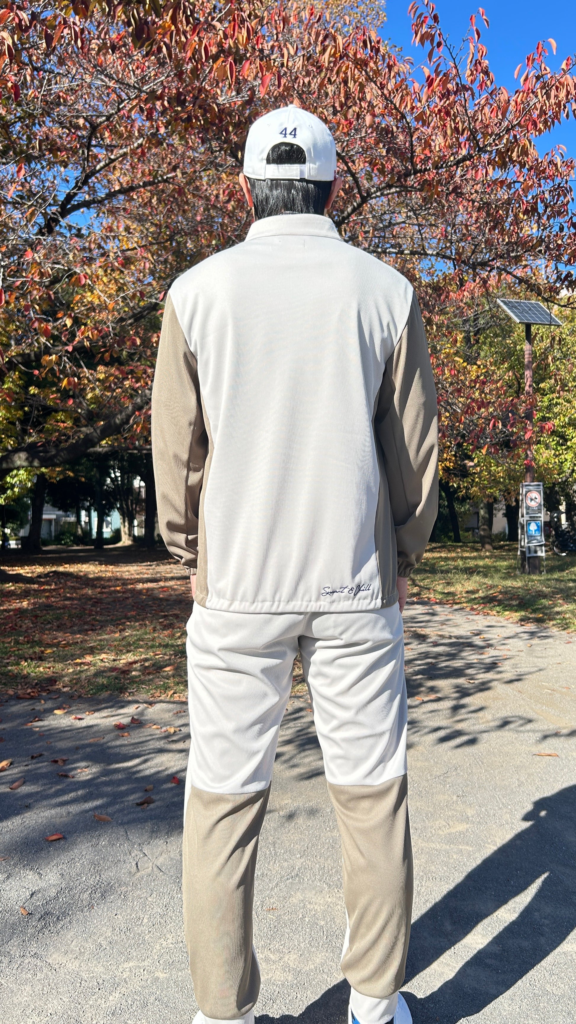 ベーシックなカラーで、お手持ちのアイテムとも合わせやすい商品となっておりますが、同時発売のバイカラージョガーパンツとのセットアップもお勧めします。