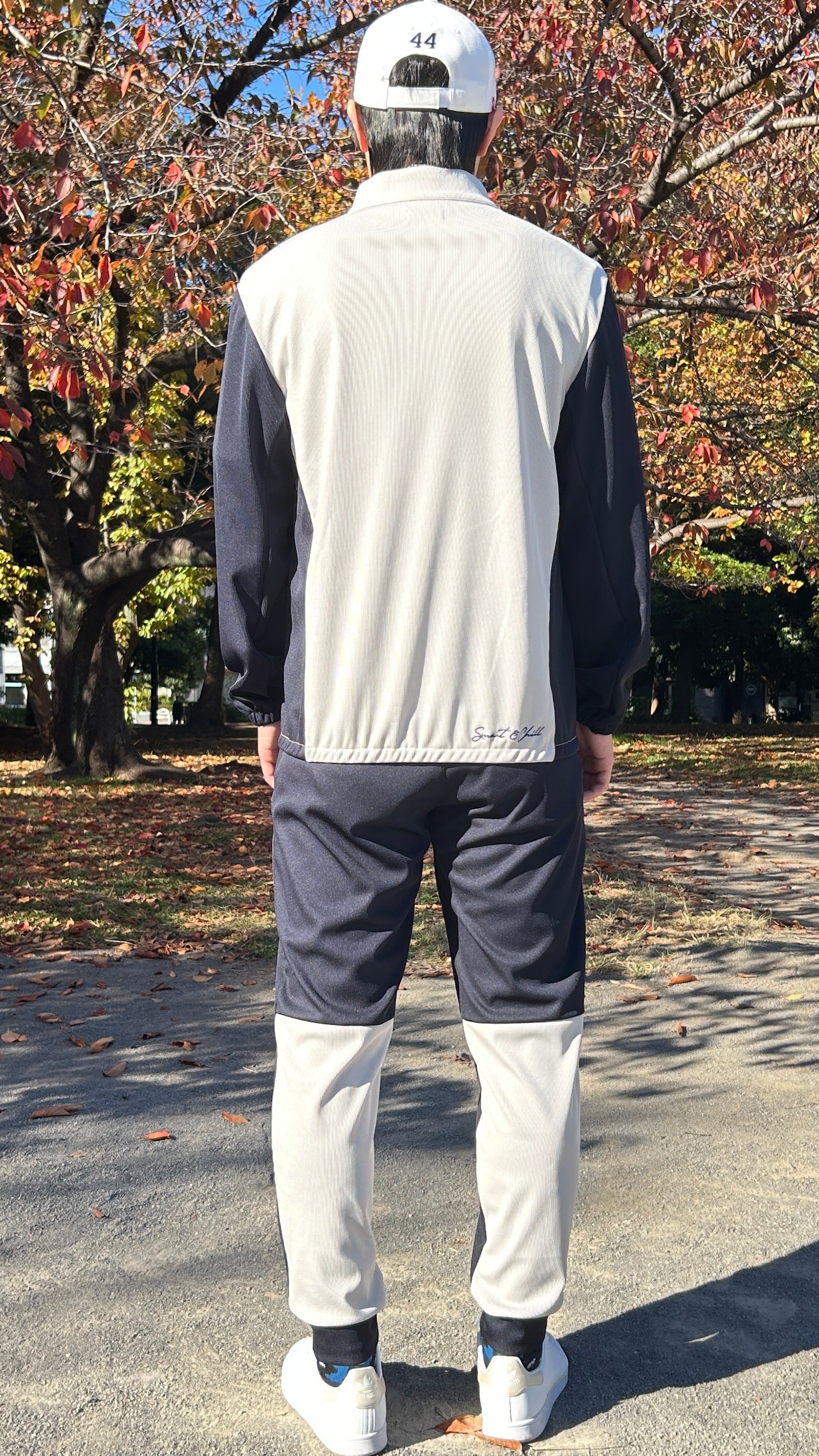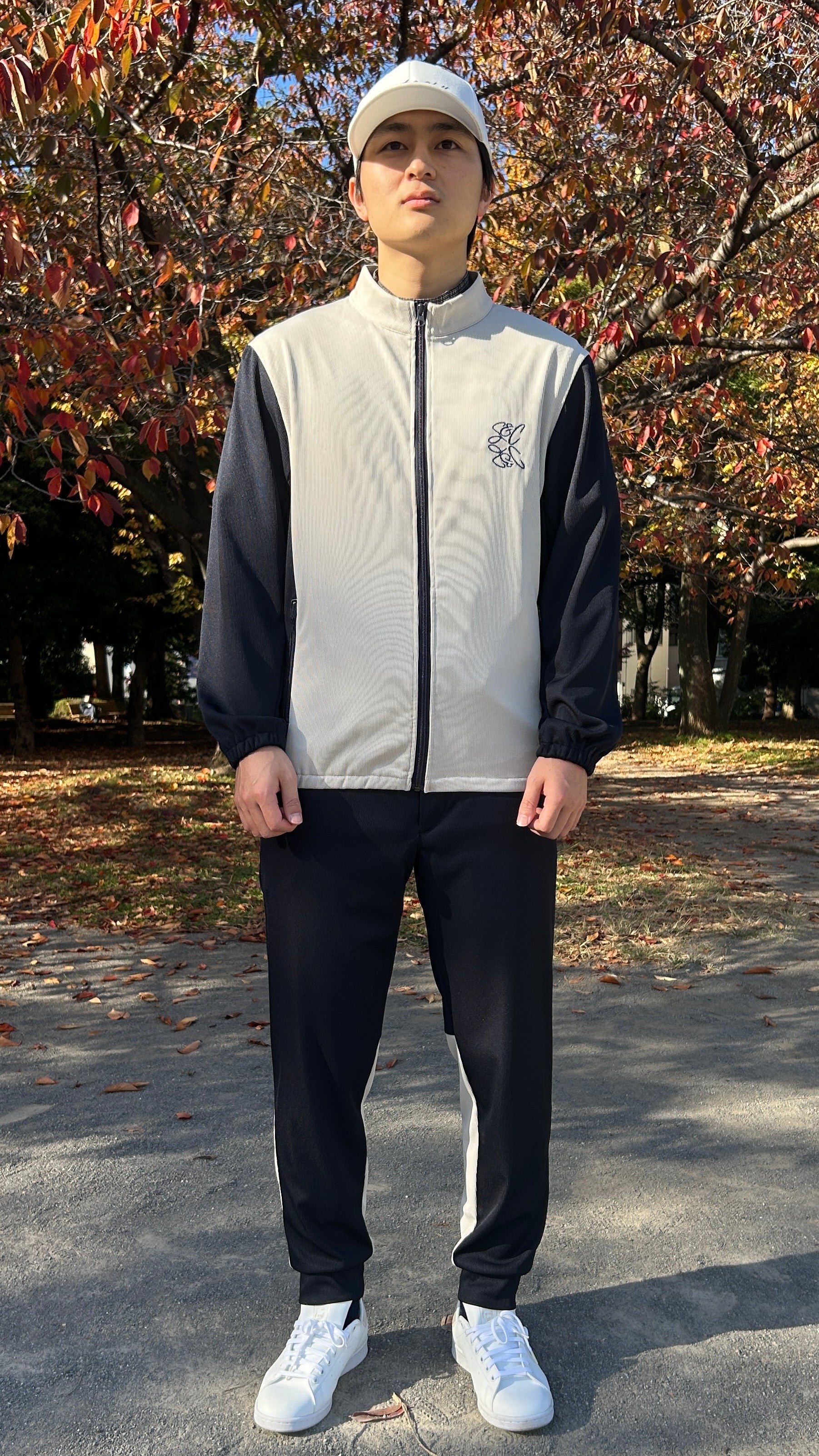 ベーシックなカラーで、お手持ちのアイテムとも合わせやすい商品となっておりますが、同時発売のバイカラージョガーパンツとのセットアップもお勧めします。