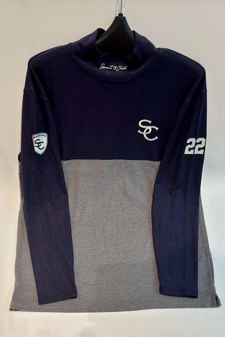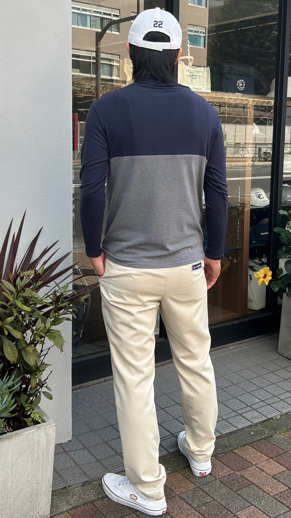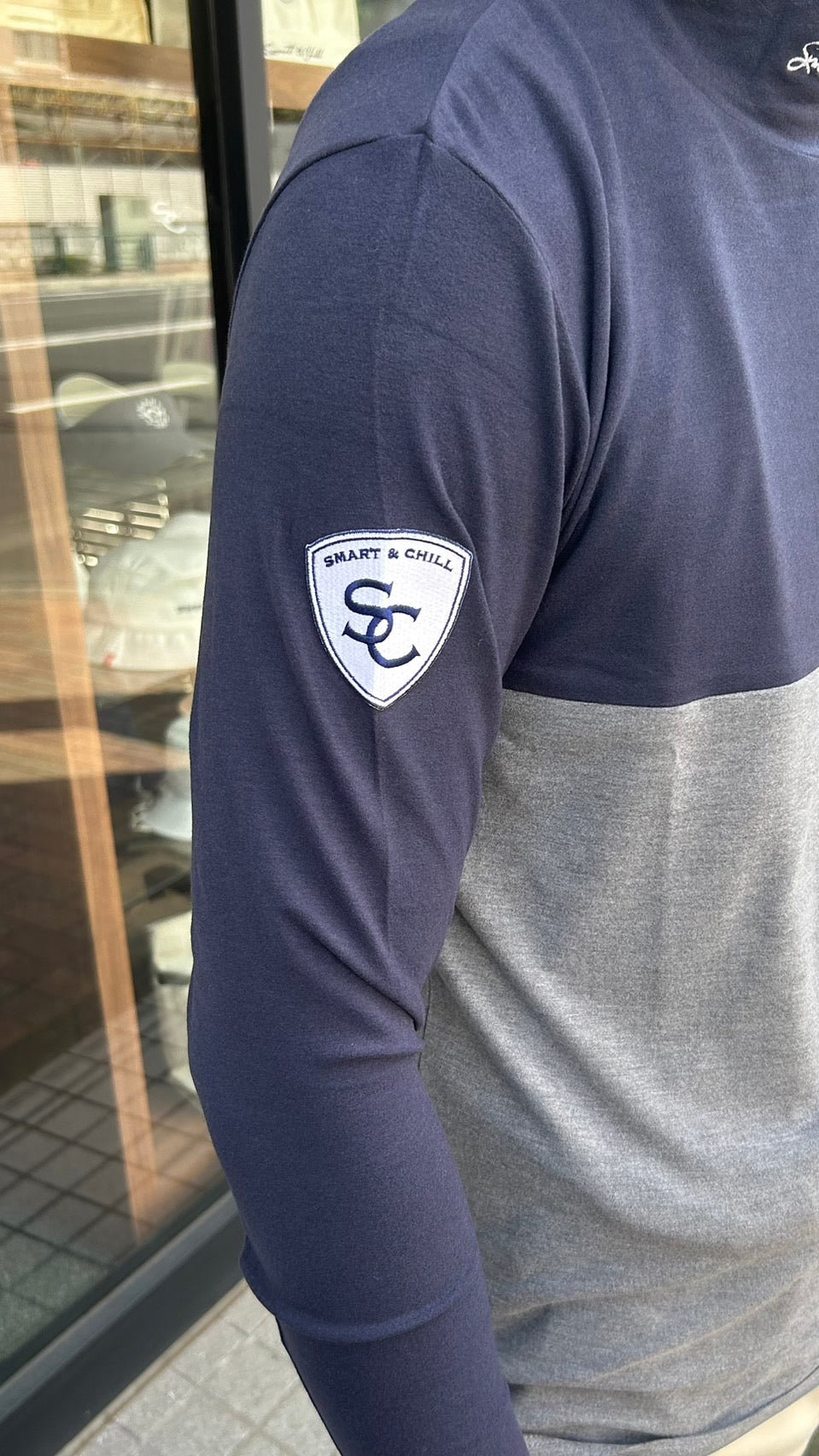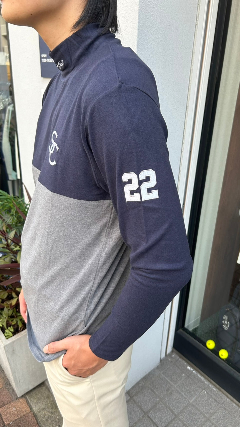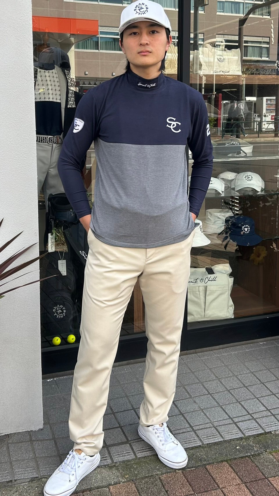 メンズゴルフウェア、オシャレなゴルフコーディネートに欠かせない清澄白河人気のゴルフウェアショップ「スマート&チル」の「切替モックネックロングスリーブ」です。